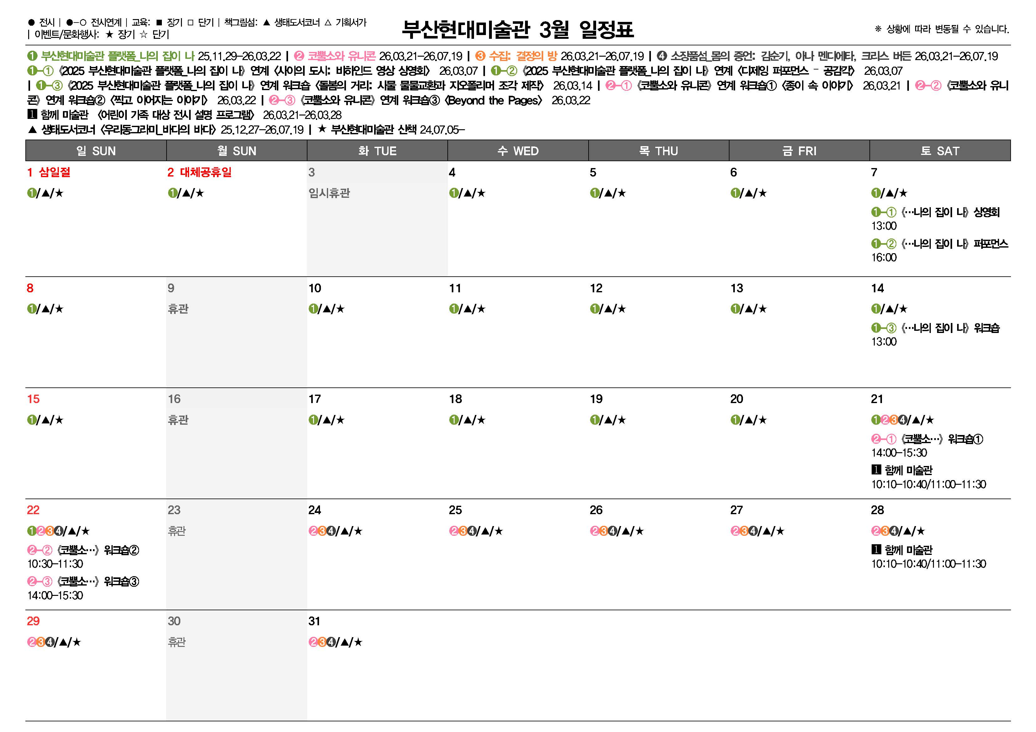 부산현대미술관 월별 일정표(2026.03)