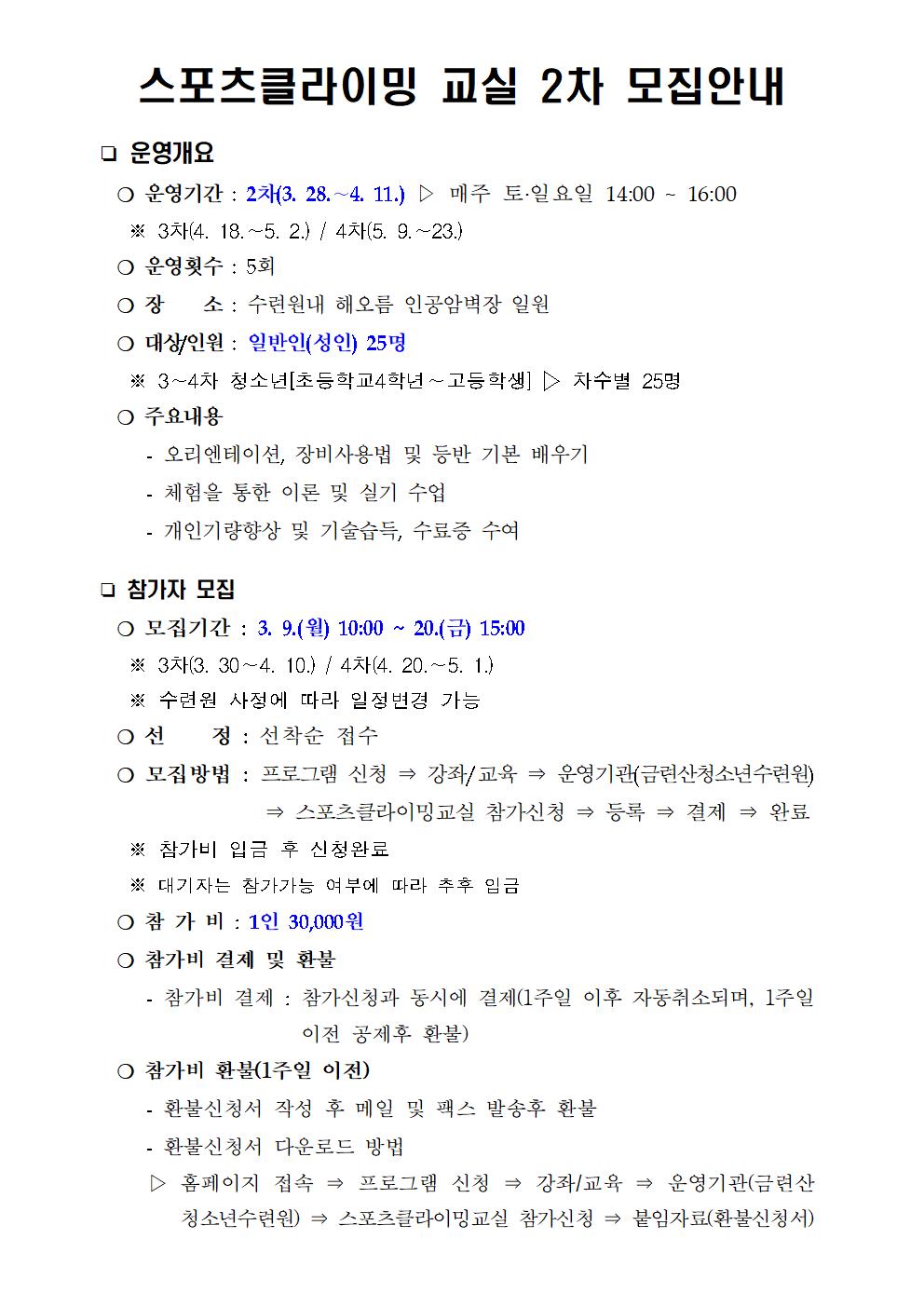 스포츠클라이밍교실(2차) 일반인(성인)