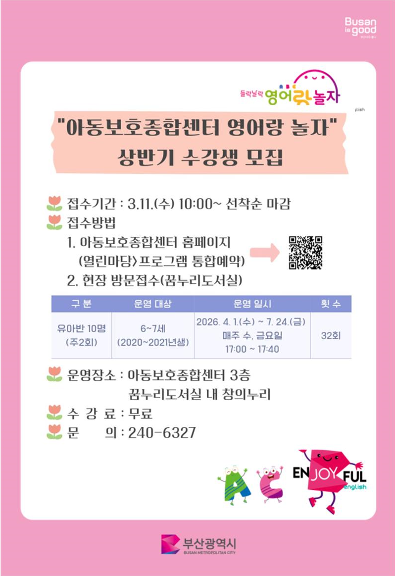 2026년 꿈누리도서실 들락날락 영어랑 놀자 상반기 수강생 모집 안내