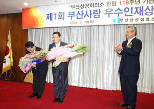 제1회 부산사랑 우수인재상 시상식은 지난 19일 열린 부산상공회의소 제118주년 창립기념식에서 있었다.