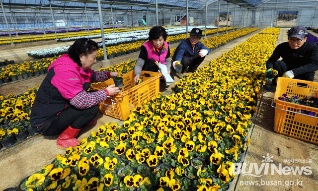 3월 들어 부산에 봄 기운이 완연하다. 봄을 알리는 봄꽃도 잇따라 화사한 얼굴을 드러내고 있다(사진은 지난 2일 기장군 철마면 고촌양묘장에서 봄꽃 팬지를 출하하는 모습). 사진제공·부산일보
