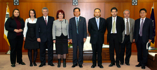 불가리아 경제사절단(단장 안나 야네바 경제에너지부 차관)이 지난달 28일 부산시를 방문, 안준태 부산시 행정부시장을 예방해 부산-불가리아 간의 교류협력 방안을 논의했다(사진 왼쪽에서 네번째 안나 야네바 단장, 다섯번째 안준태 행정부시장).