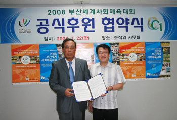 부산세계사회체육대회의 성공적인 개최를 위해 기업들의 현금후원과 현물협찬이 줄을 잇고 있다.