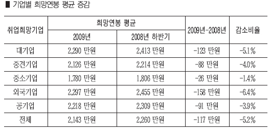 따라서 대기업과 중소기업 취업희망자의 희망연봉 평균은 실제 연봉의 81.5% 수준인 것으로 조사됐다.