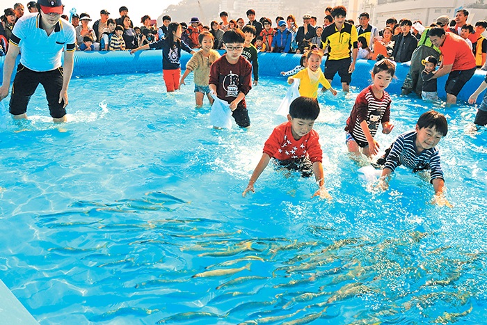 (사진은 지난해 맨손으로 고등어잡기 행사에 참여하는 어린이들 모습.)∎ 국민생선 고등어, 먹고 잡고 즐기고!