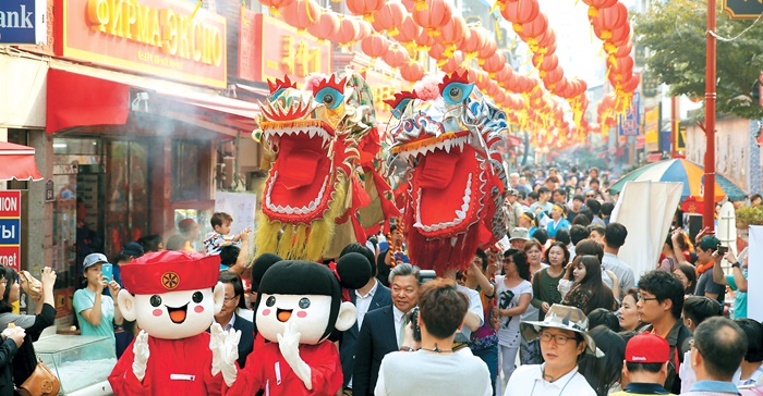 (사진은 '차이나타운특구 문화축제' 거리 퍼레이드 모습.)∎ 중국 전통공연 즐기며 양꼬치에 맥주 한잔?