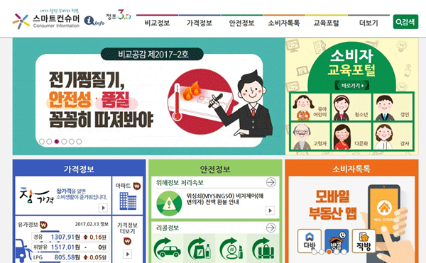 ·한국형 컨슈머리포트 '비교공감' : 비교정보는 한국소비자원과 소비자단체가 만드는 정보로 '비교공감'과 '일반비교정보'로 나뉜다. '비교공감'은 같은 기능을 가진 여러 제품을 개요·시험결과·제품별 특징·구매가이드 등으로 구분해 상세한 정보를 제공한다. 올해 업데이트 된 정보는 겨울철 시민들이 많이 사용하는 전기찜질기와 다운 이불에 대한 내용이다. 제품별 성능·특징·가격부터 안전성까지 한 눈에 비교할 수 있어 편리하다. '일반비교정보'는 상품·서비스·가격·피해 비교 정보를 제공한다.