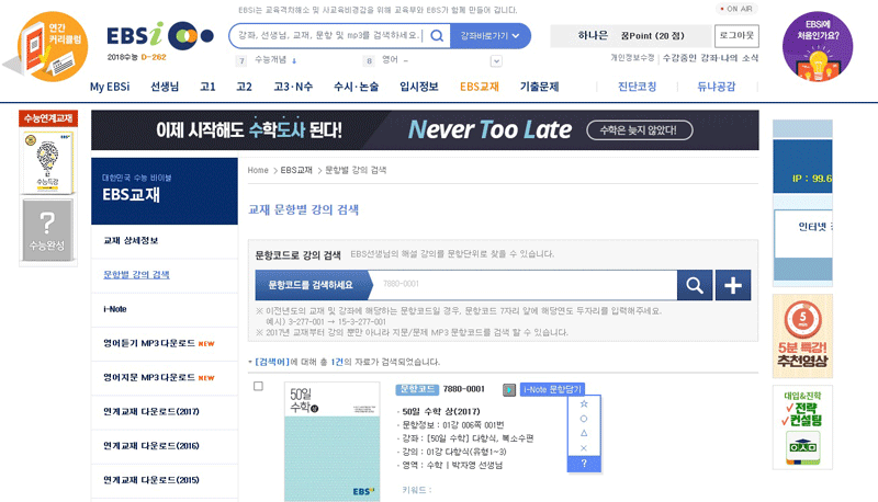 ▲EBSi는 교육부와 한국교육방송공사가 운영하는 고교생 수능강의 전문 사이트이다(사진은 EBSi 문항별 강의 검색화면 캡쳐).