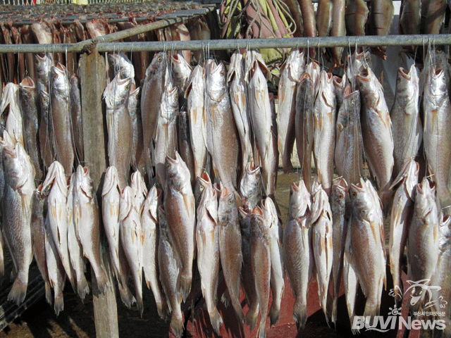조상님 차례 상에는 있어야 하는 귀하신 몸 조기가 꼬들꼬들 마르고 있다. 옆에는 명태가 역시 설날아침에 가족들이 먹을 식단에 오를 준비를 하고 있다. 어시장은 대목장이 확실하다. 시민들은 모두 기웃거리면서 값을 흥정하고 있다.