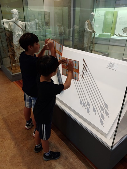 ▲ 사진은 박물관 구석구석 동생을 데리고 다니며 설명도 해주고 답안지 작성을 함께하는 형제들.