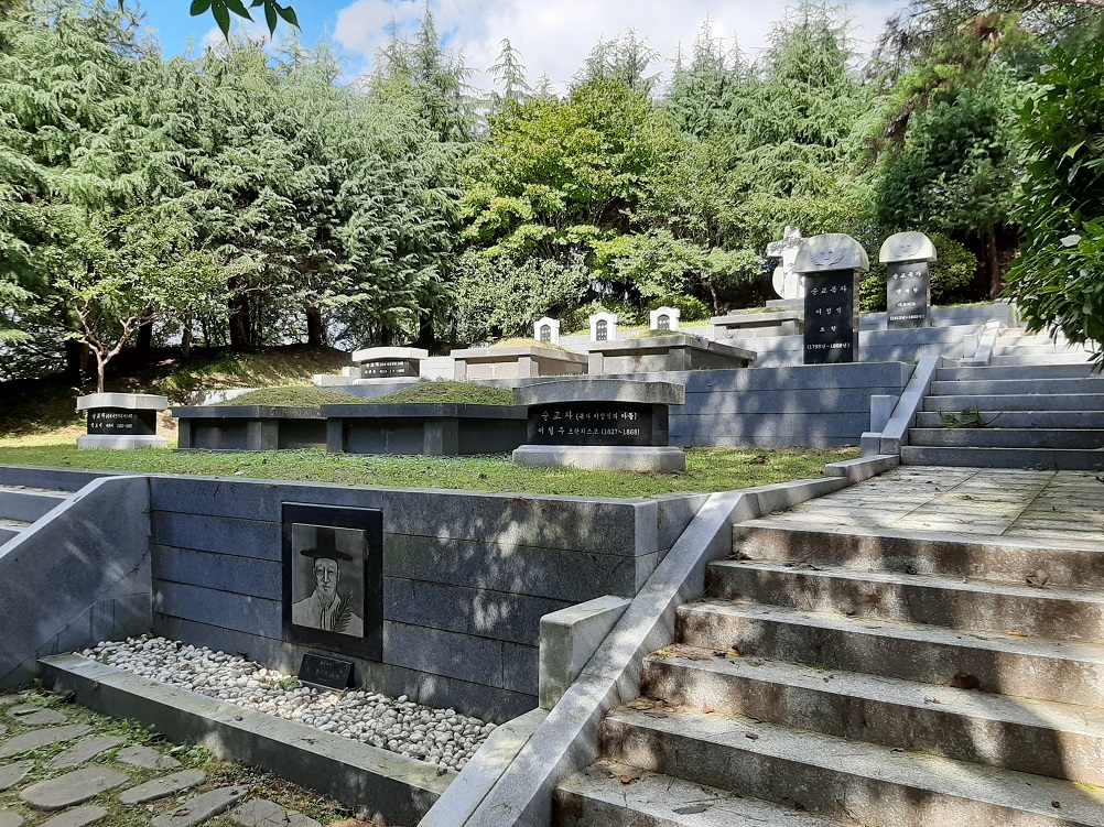 ▲ 사진은 순교자들이 모셔져 있는 모습. 비석과 사진 등이 있다.