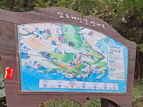 ▶ 사진은 삼포해안길 안내도. 문탠로드부터 시작되는 해안길의 지도 모습을 보여준다.