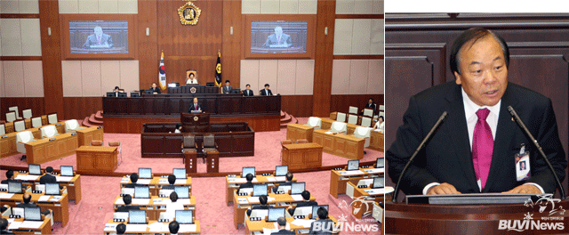 제6대 부산시의회가 지난 6일 출범했다(사진은 이날 선출된 제종모 의장이 인사를 하는 모습).제6대 부산광역시의회가 지난 6일 출범했다.