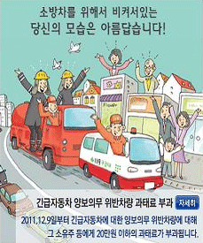 긴급자동차 양보의무 위반 차량에 대해 과태료를 부과하는 도로교통법 개정 내용을 알리는 포스터.
