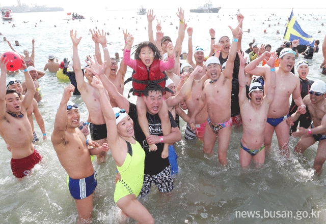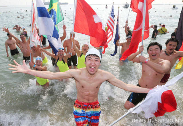 맹위를 떨치던 한파가 잠시 물러갔다지만 이날 낮 최고기온은 영하 1도. 추위에도 아랑곳없이 공식 집계된 참가자만도 외국인 200명을 포함해 3천여 명에 달했다. 노익장을 과시한 할머니부터 검은 티셔츠를 벗어던진 근육질 청년, 다양한 국적의 외국인들까지. 수많은 사람이 메운 해운대 겨울바다는 그 자체만으로 장관이었다. 백사장에서 카메라를 들고 있던 가족과 지인들도 '북극곰'들의 열기에 환호하면서 기뻐했다.