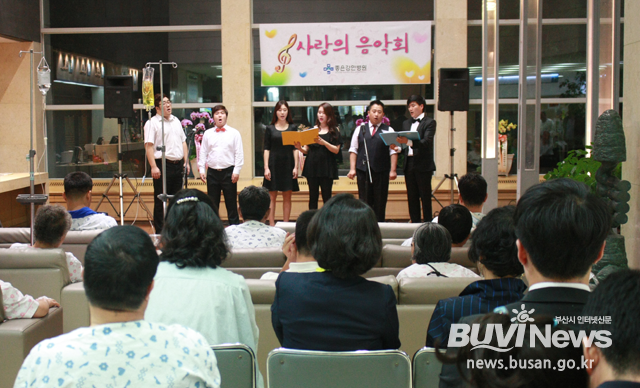 좋은강안병원(병원장 구정회)은 지난 19일 오후 5시30분 병원 1층 로비에서 성악공연을 열었다. 부산지역 젊은 성악가들의 재능기부를 통해 진행된 이번 행사에서는 유명 뮤지컬 및 오페라 삽입곡을 불러 큰 호응을 얻었다.