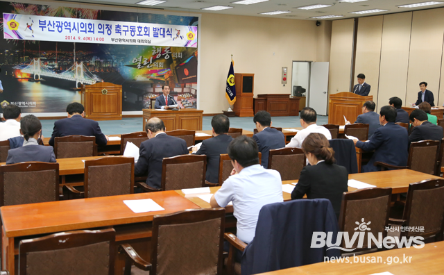 '의정 축구 동호회' 부산시의회(의장 이해동)는 지난 4일 의원 간의 화합을 도모하고 활력 넘치는 의회를 만들기 위해 '부산시의회 의정축구 동호회'<사진>를 발족했다. 초대 회장은 3선의 손상용(북구2) 부의장이 맡았다.
