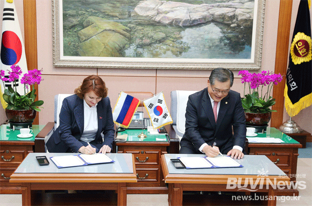 러시아 블라디보스톡-부산 시의회 우호교류 양해 각서 체결