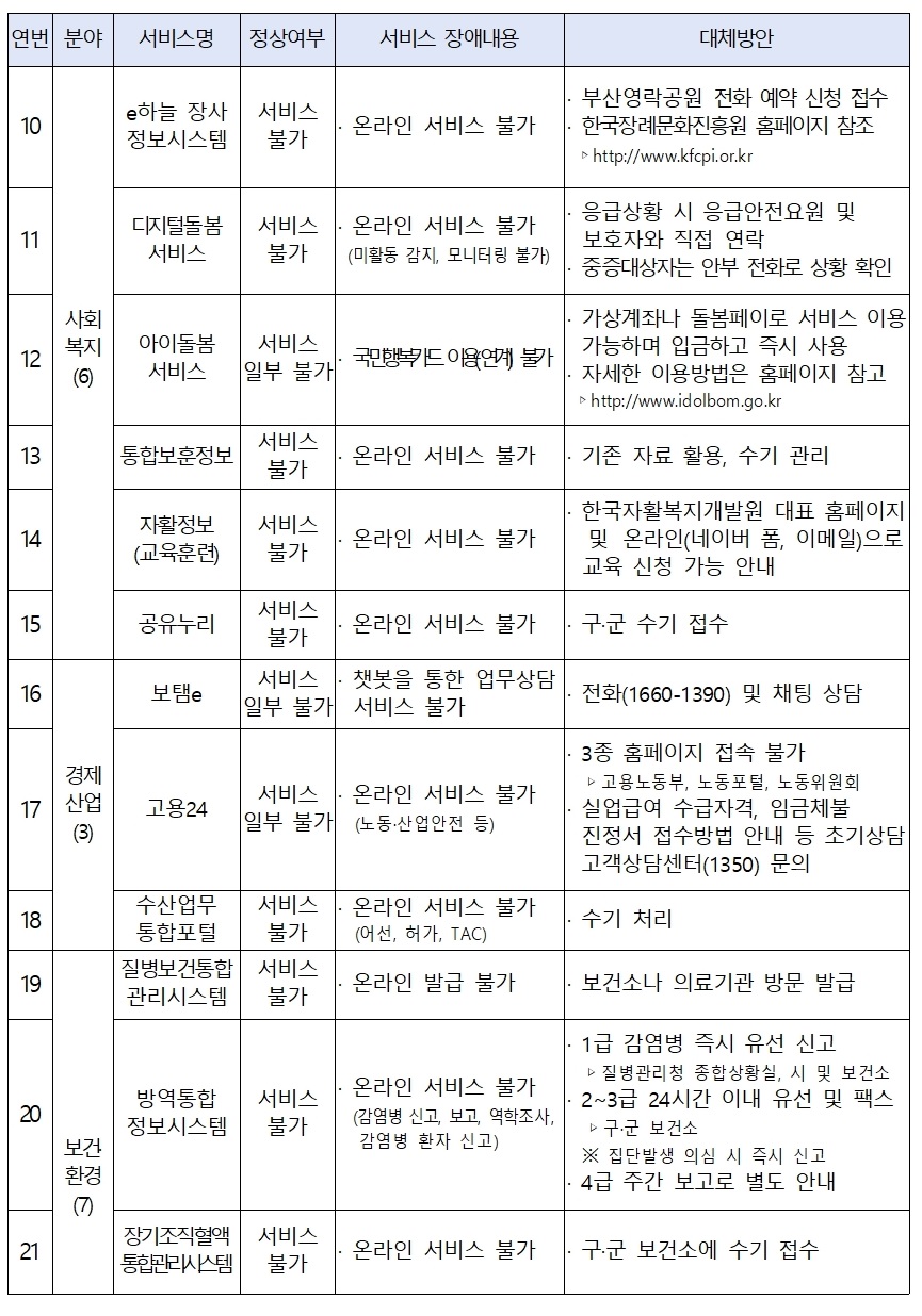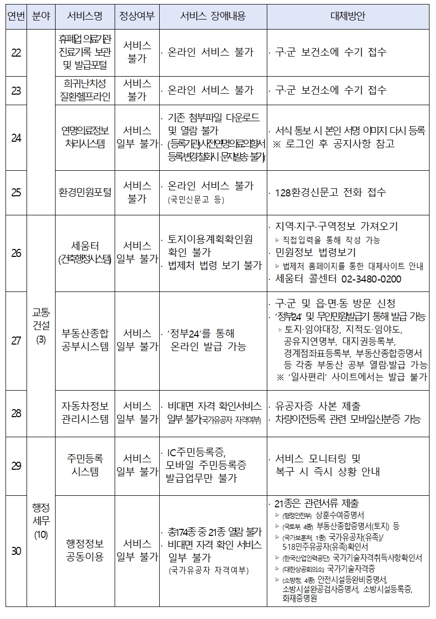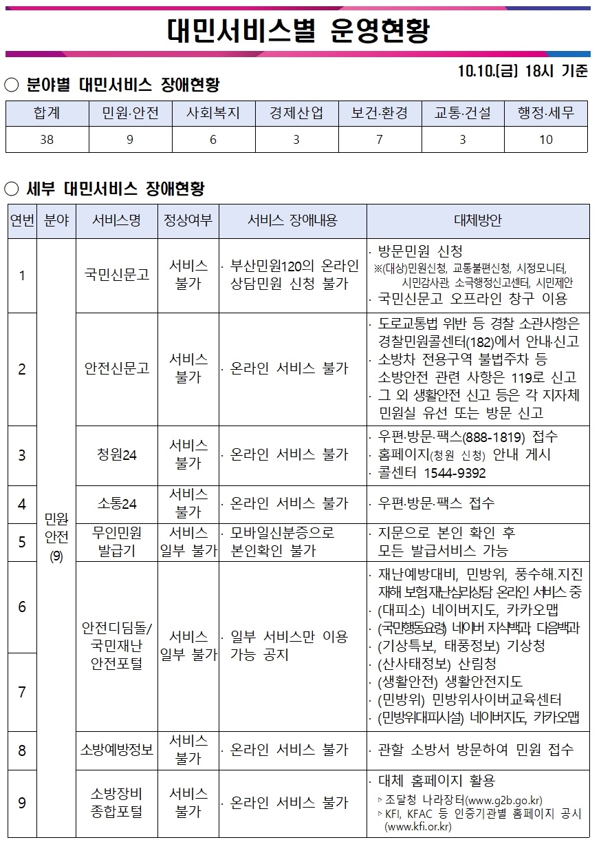 서비스 복구 현황 및 공식 안내는 각 부처와 기관의 공식 홈페이지 공지사항에서만 확인해 주시기 바랍니다.