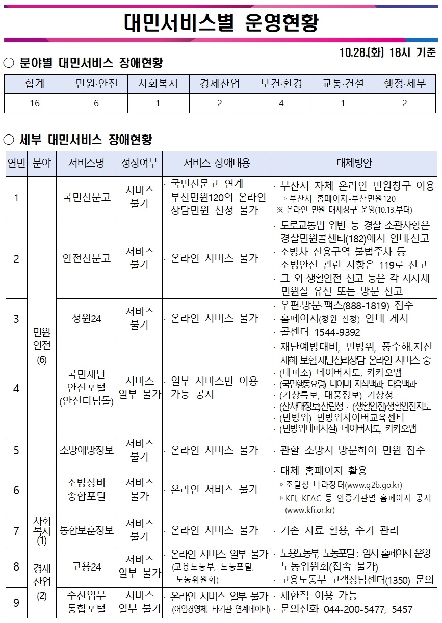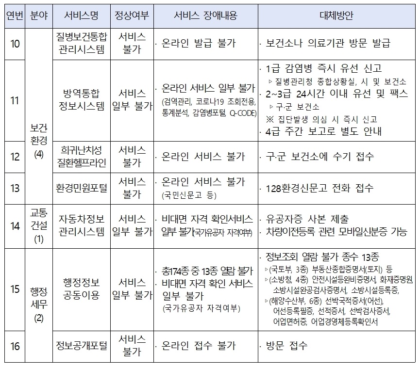 서비스 복구 현황 및 공식 안내는 각 부처와 기관의 공식 홈페이지 공지사항에서만 확인해 주시기 바랍니다.