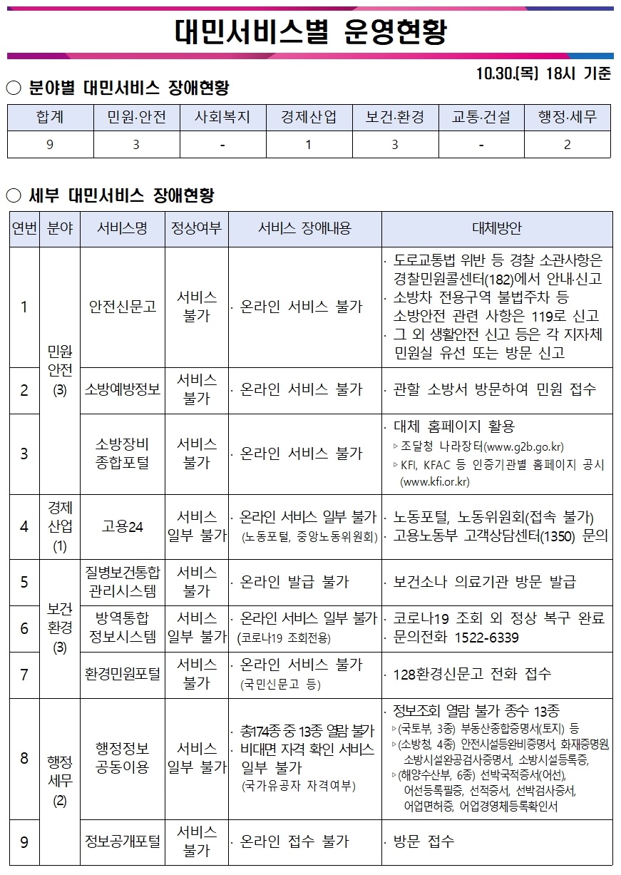 서비스 복구 현황 및 공식 안내는 각 부처와 기관의 공식 홈페이지 공지사항에서만 확인해 주시기 바랍니다.