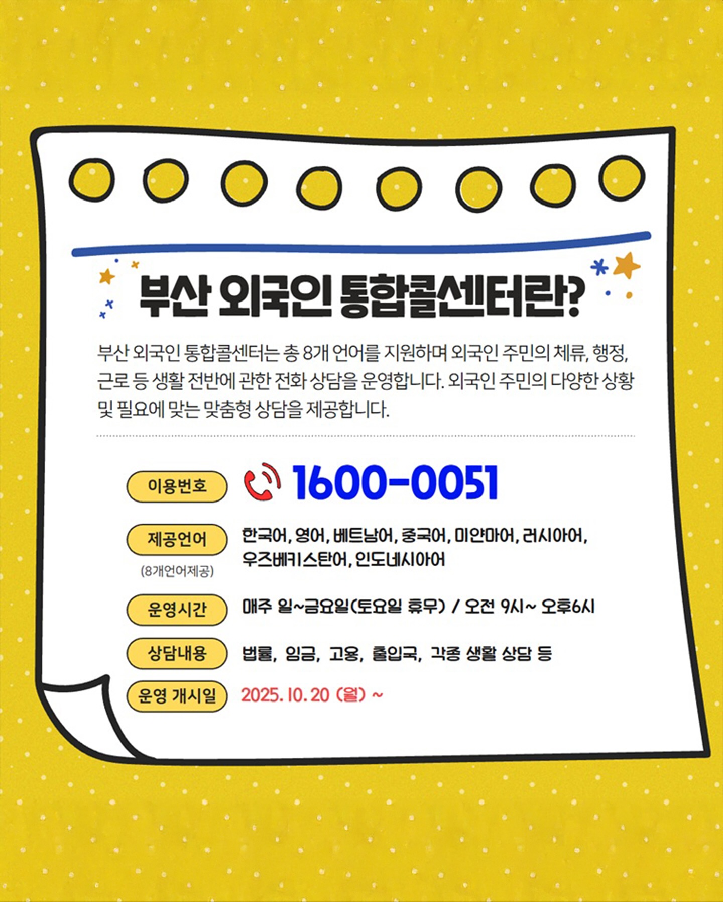 부산 외국인 통합콜센터 ☎1600-0051
