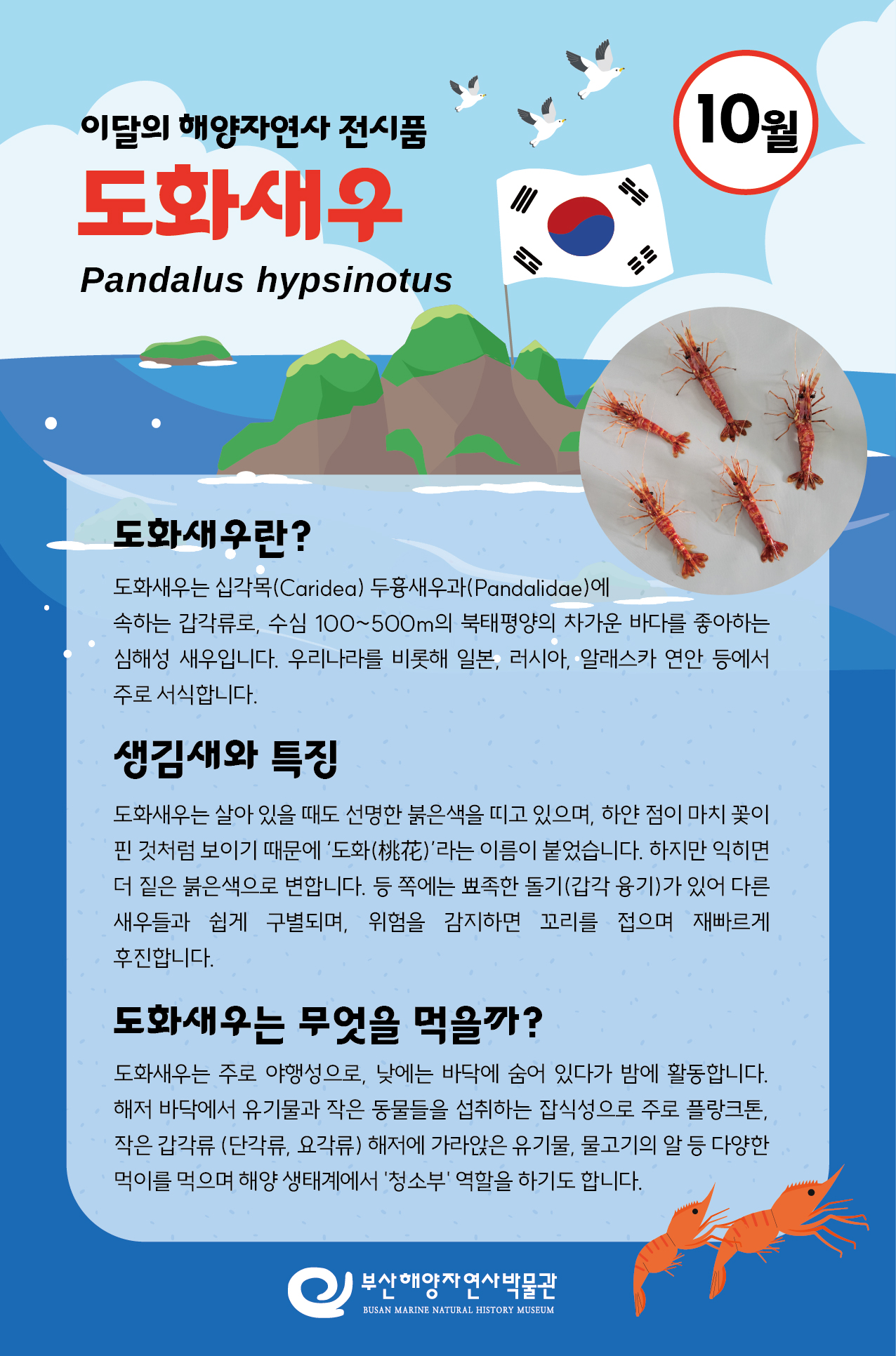 10월에 만나게 되는 이달의 전시품은 '도화새우'입니다.