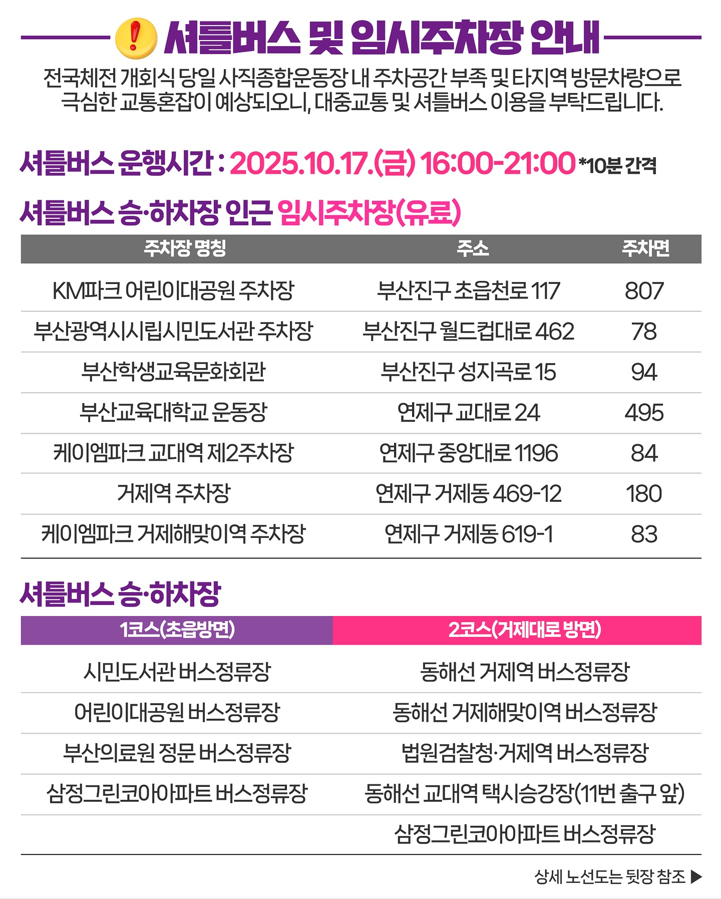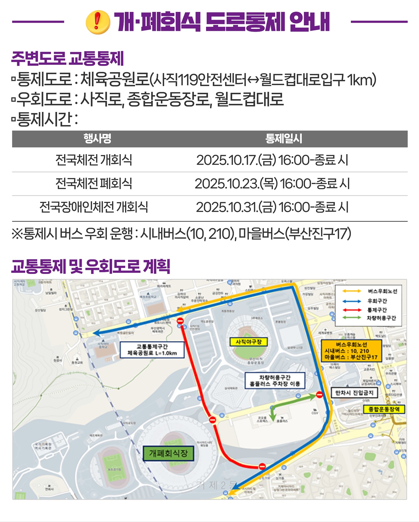 🔎자세한 노선 및 통제구간은 전국체전 공식 누리집을 참고해주세요