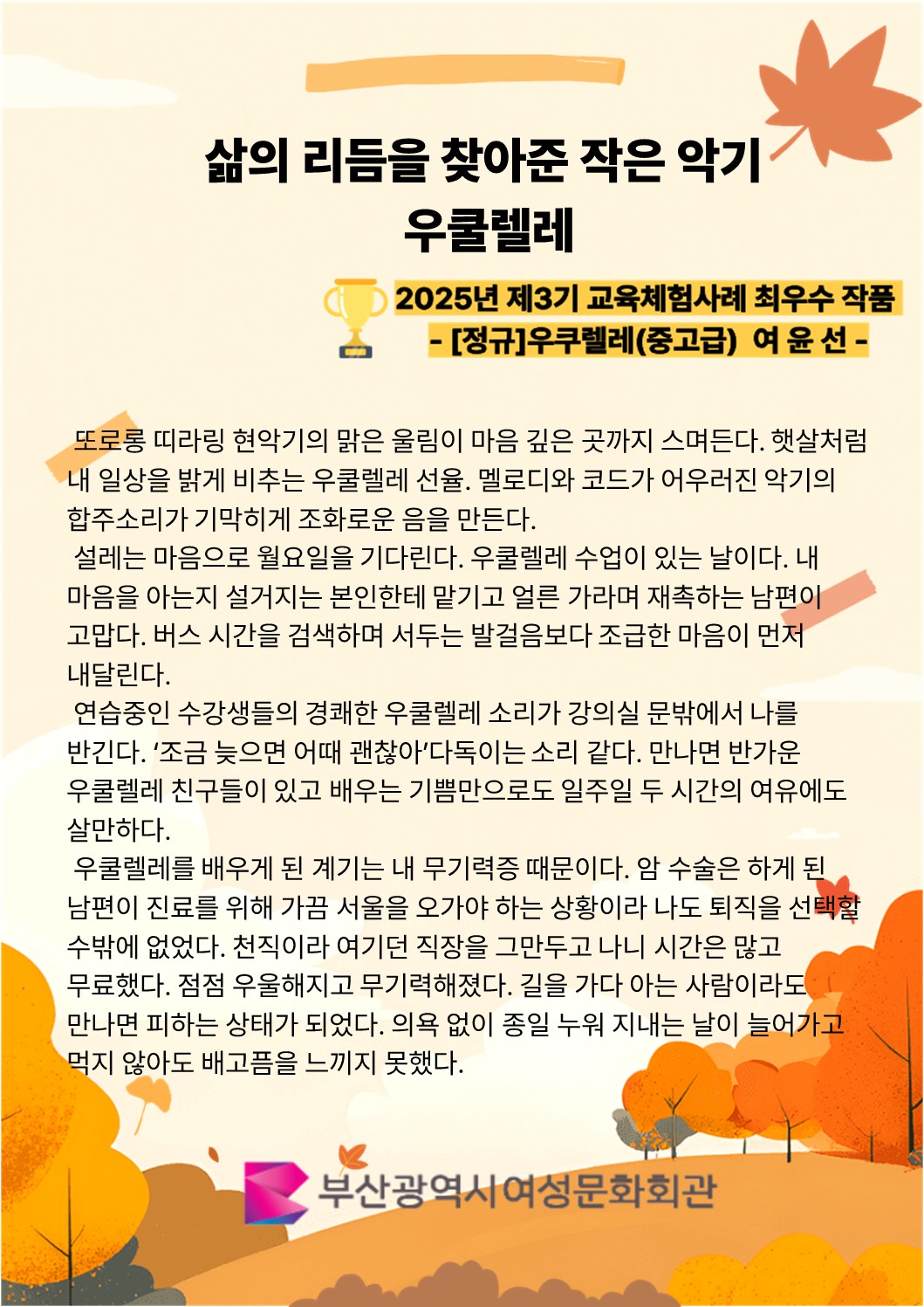 2025년 제3기 문화교실 교육체험사례 우수작 소개(최우수)